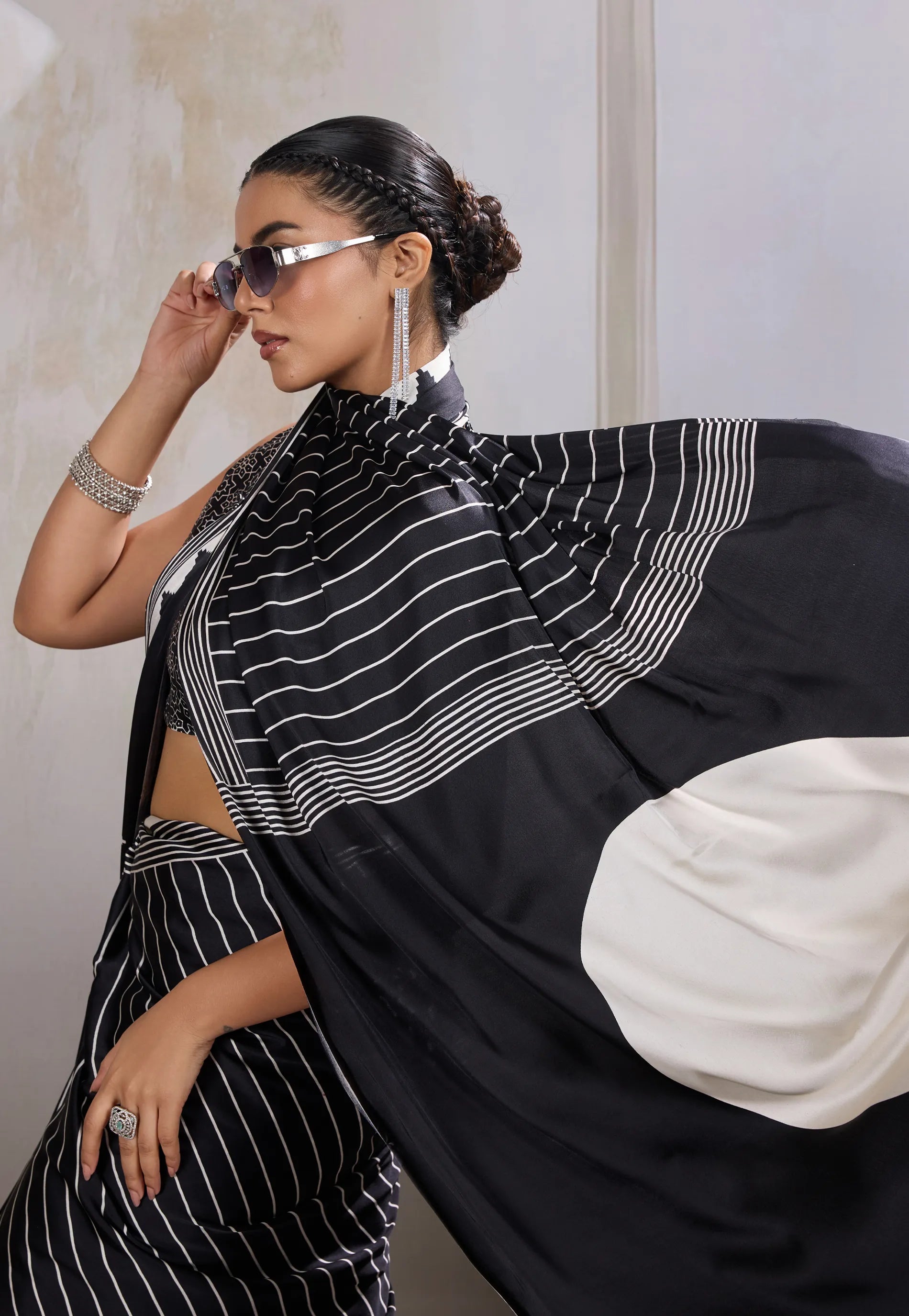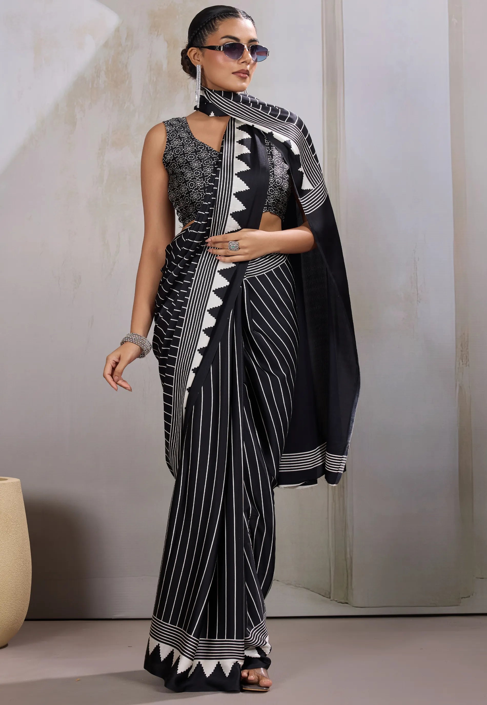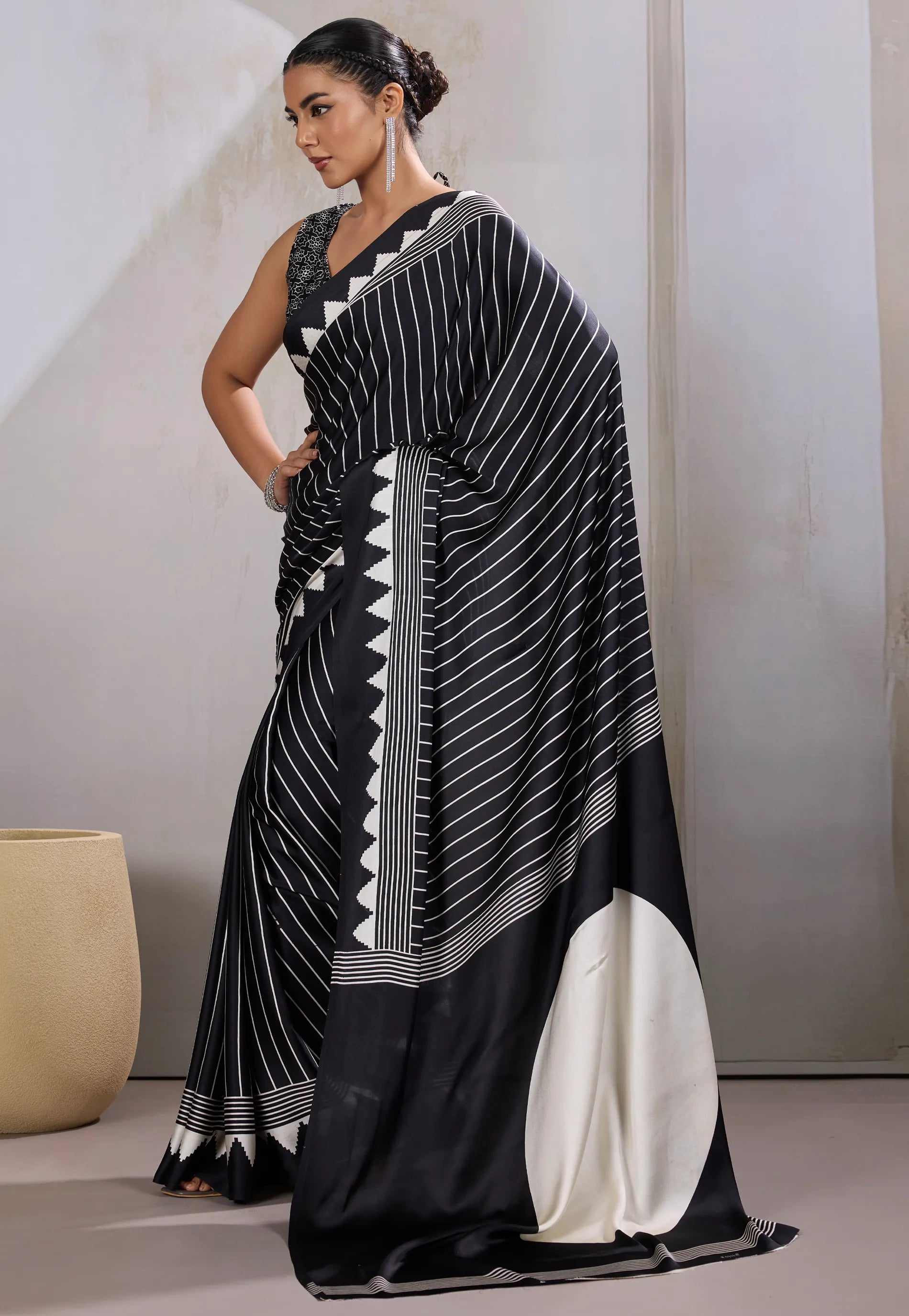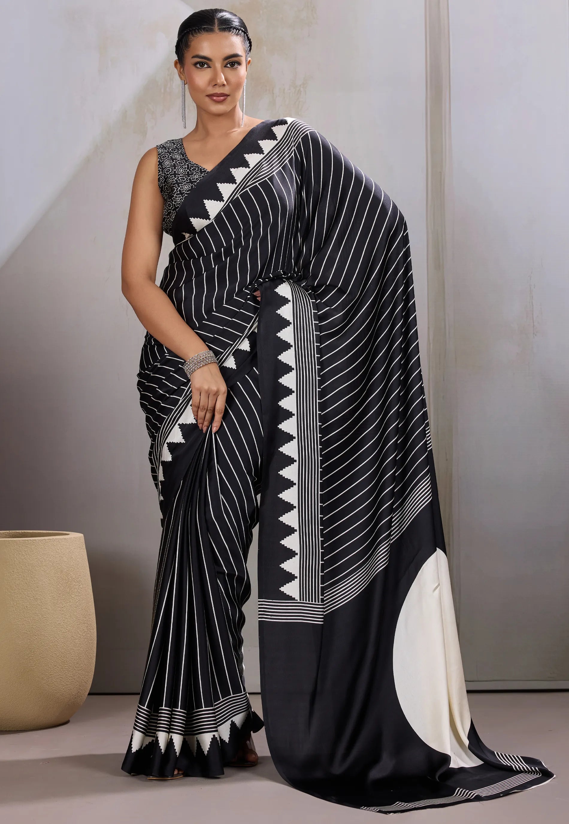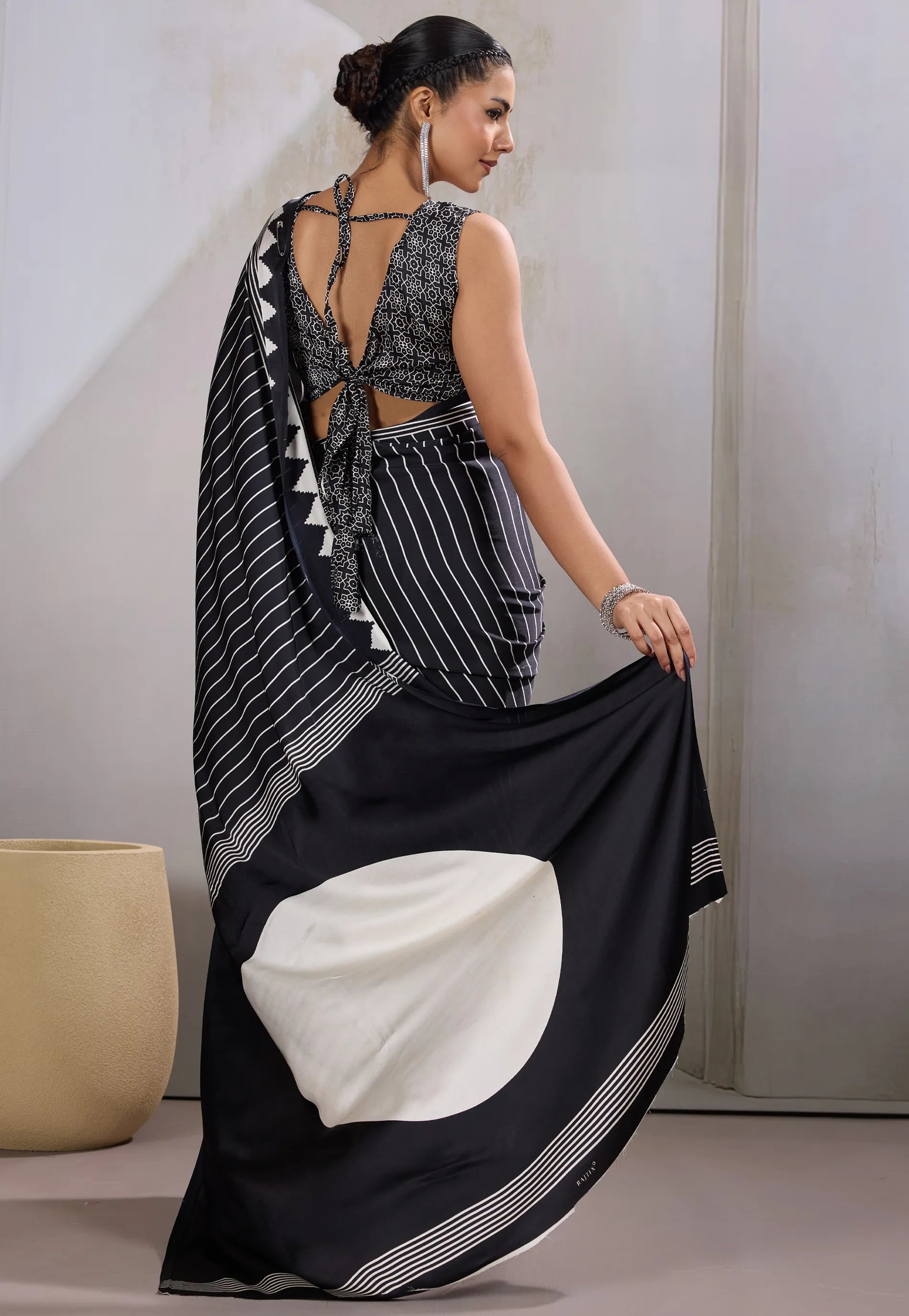 Black Ajrakh Print in Modal Silk Saree With Blouse Piece