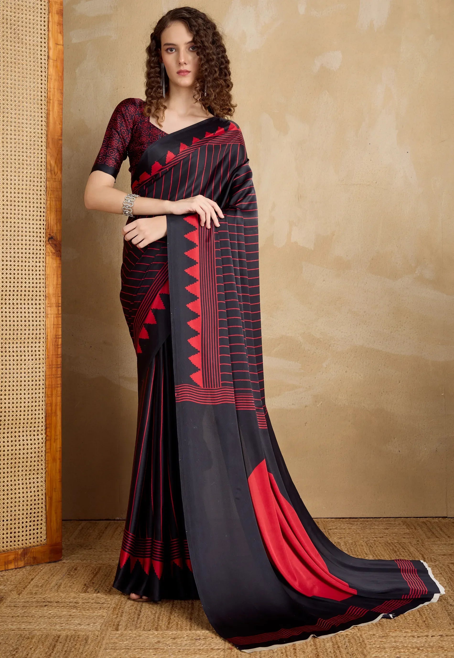 Designed for weddings, festive celebrations, and formal gatherings, Modal silk sarees feature vibrant prints such as Rajasthan and Gujrat Ajrakh print and Rajasthani badni print, intricate embroidery, and delicate zari work, offering a sophisticated yet comfortable drape.