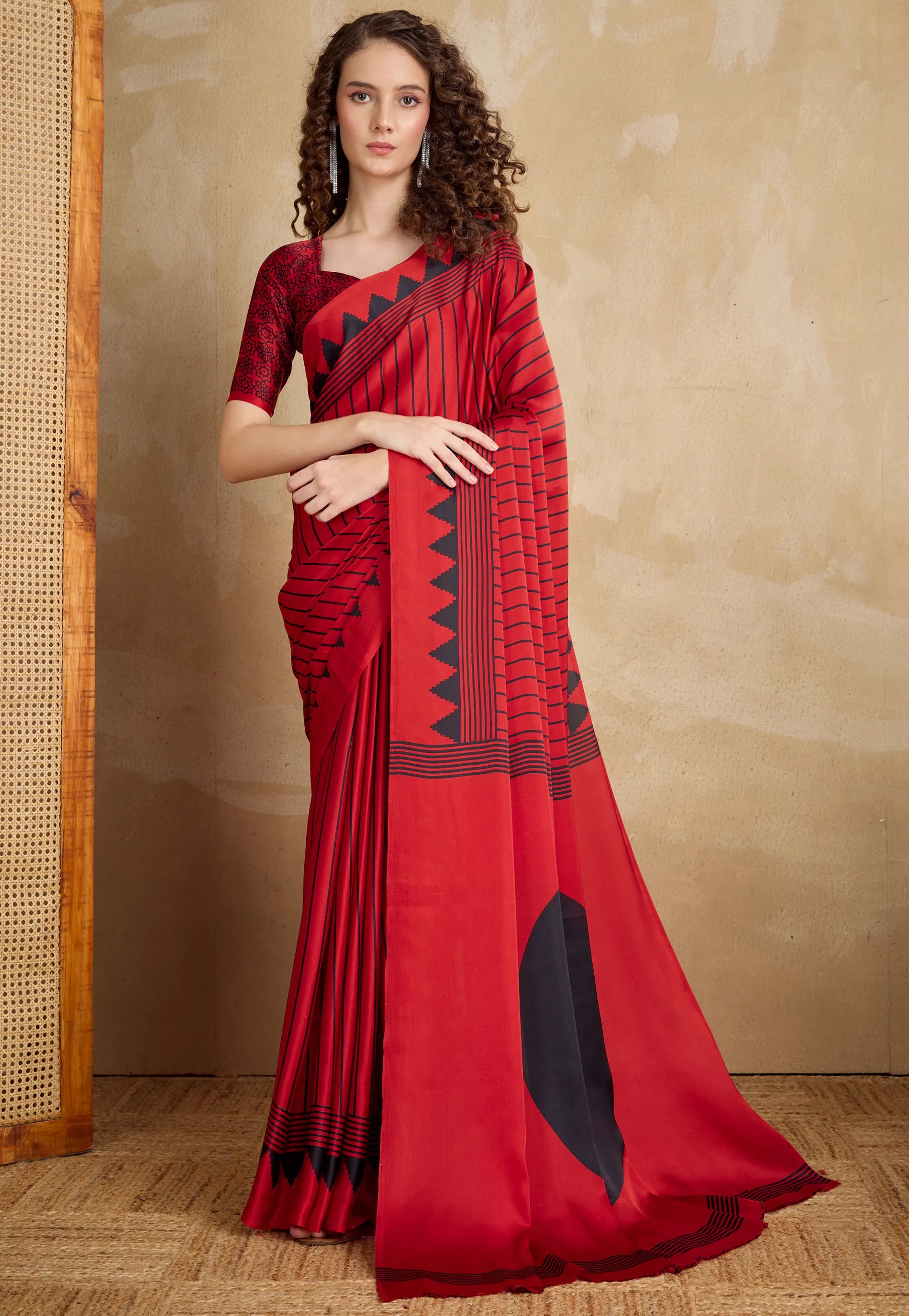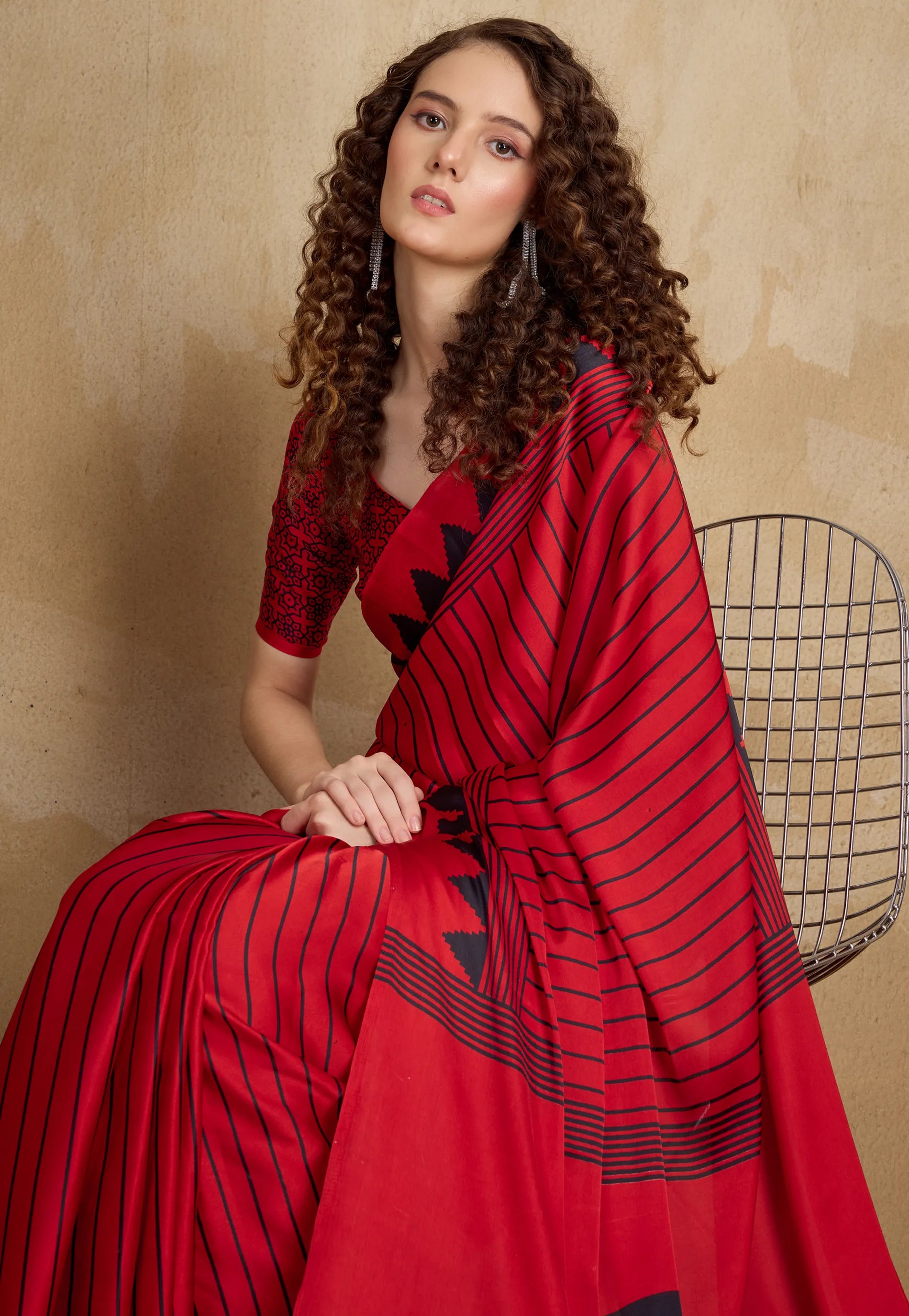 Red Ajrakh Print in Modal Silk Saree With Blouse Piece