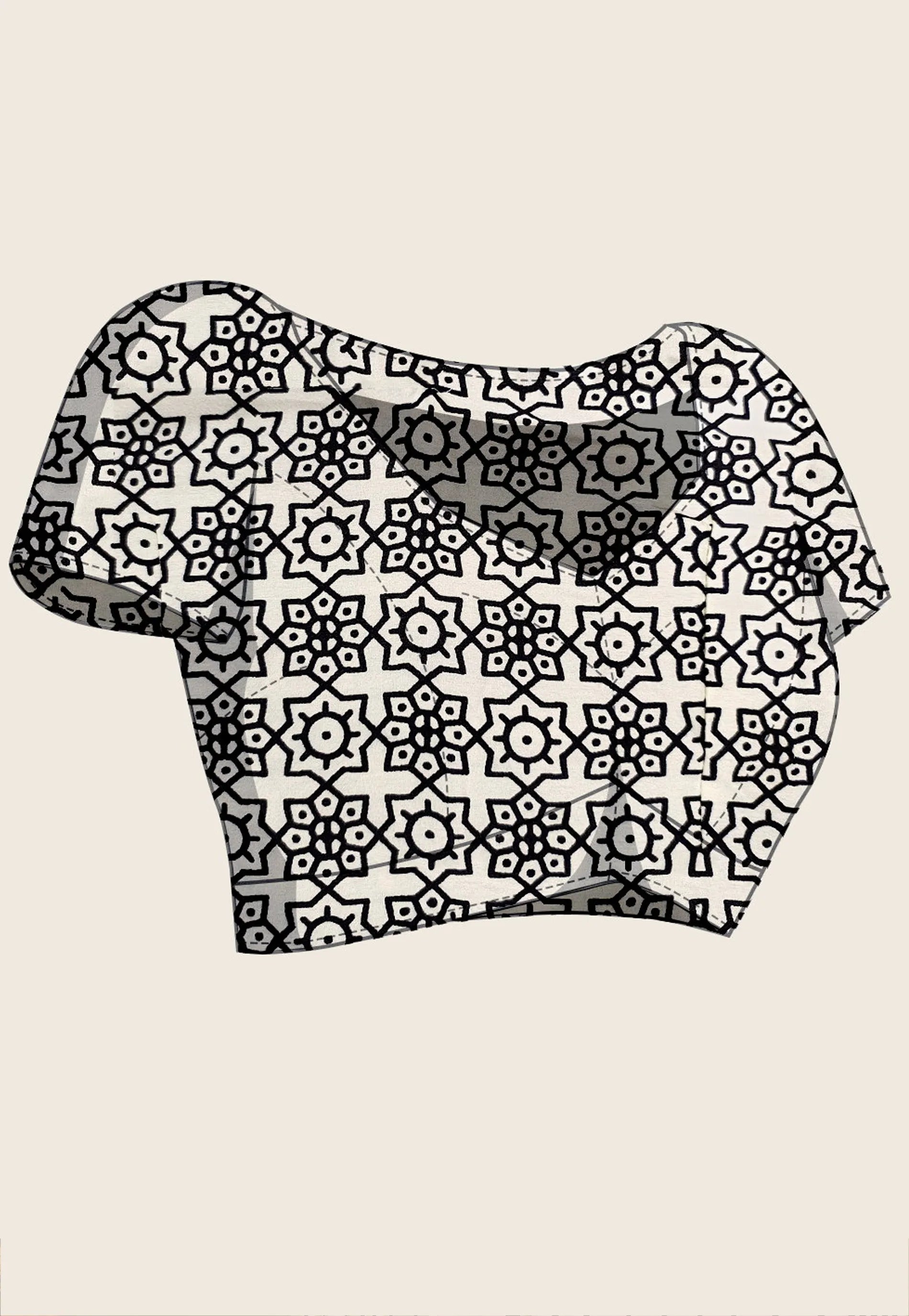 White Ajrakh Print in Modal Silk Saree With Blouse Piece