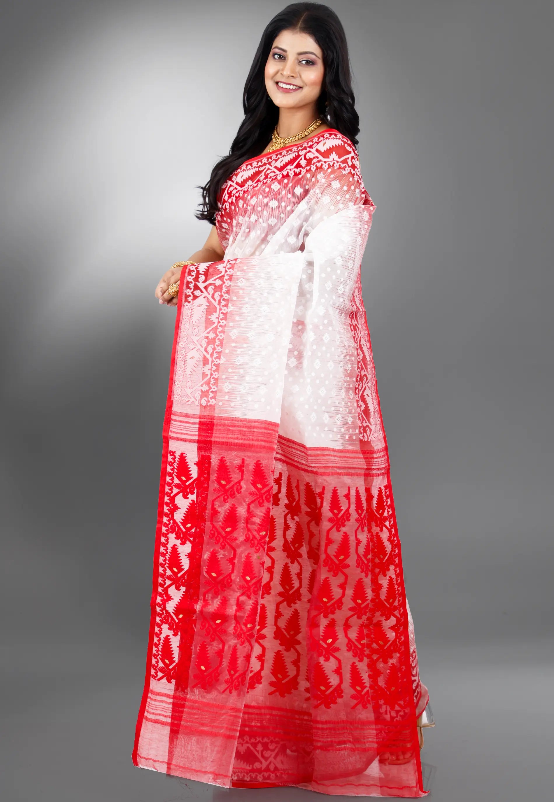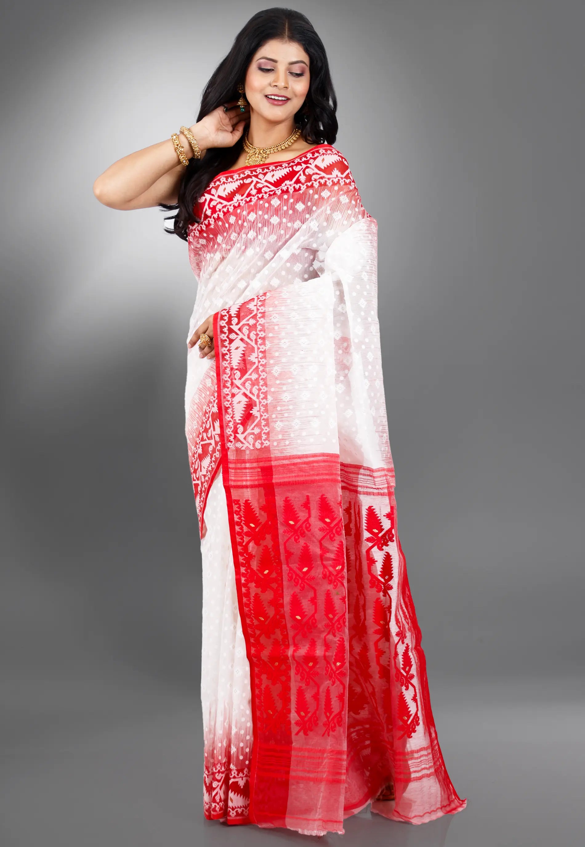 Woven using the ancient muslin weaving technique, Jamdani sarees are a symbol of luxury and tradition.